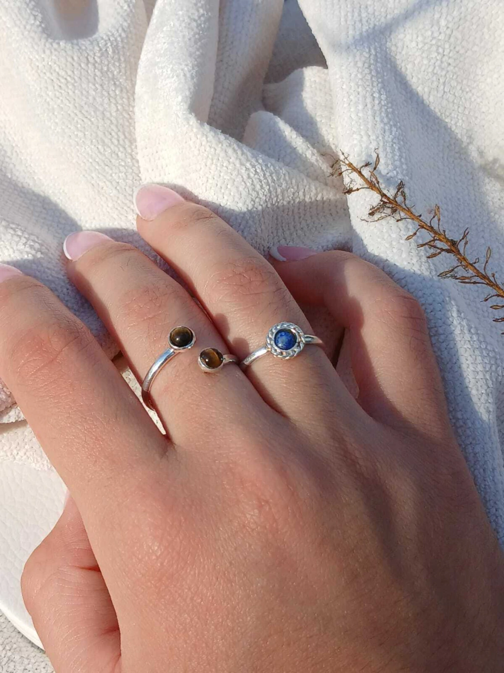 En nuestro taller trabajamos con una amplia variedad de piedras naturales. Como fabricantes, podemos adaptar este modelo a la piedra que conecte con tu energía o estilo.